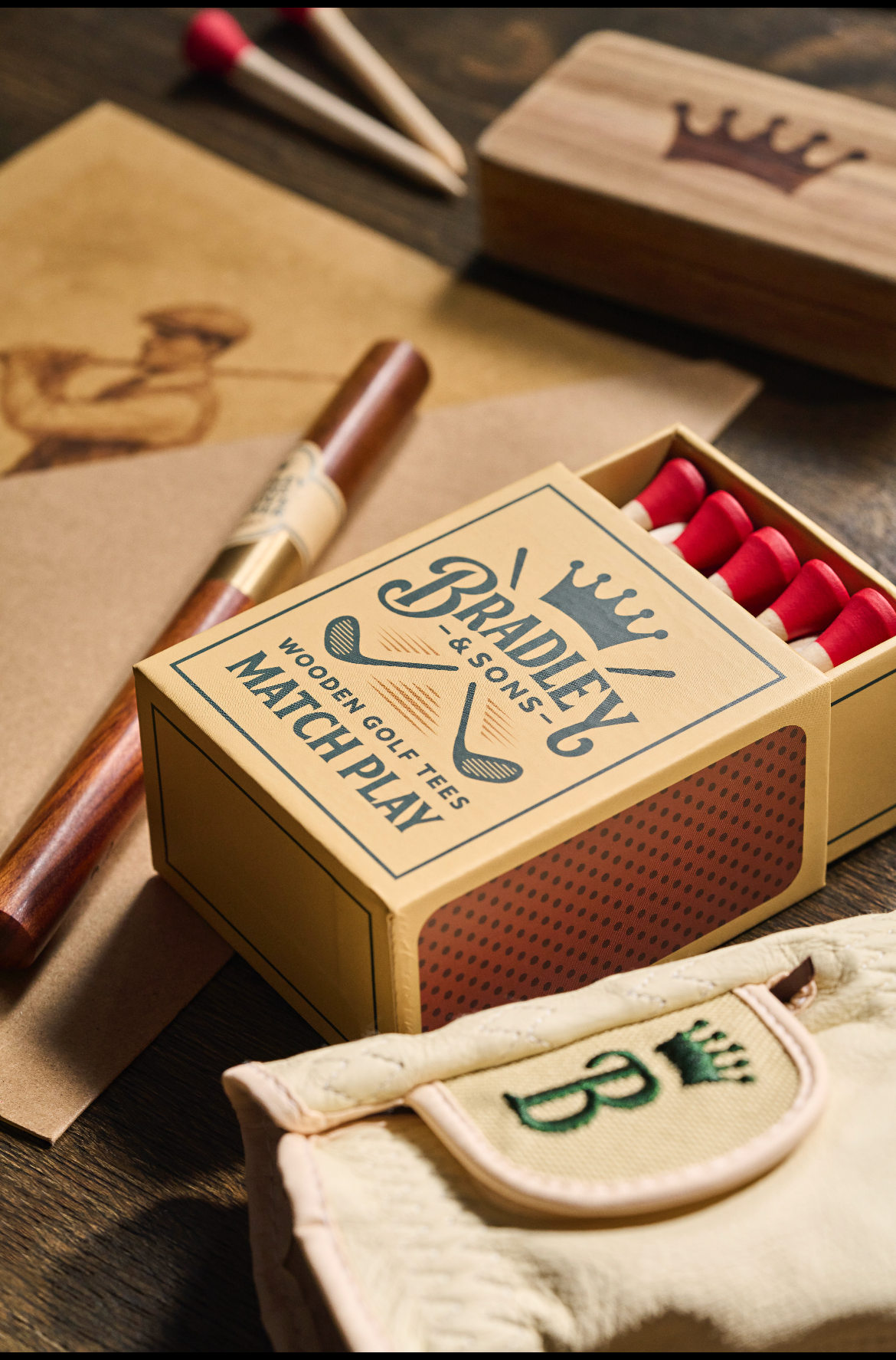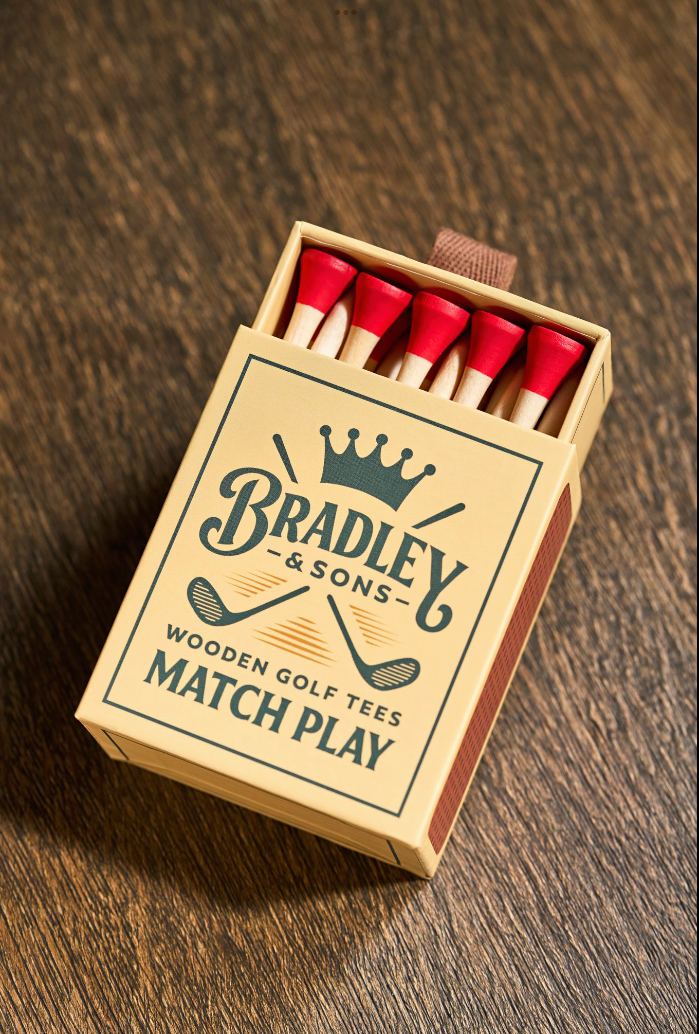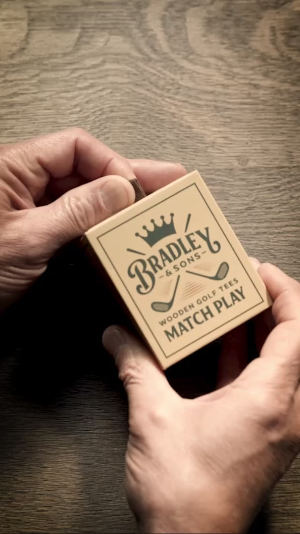 • Vintage style matchbox packed with 30 matchstick style birch tees