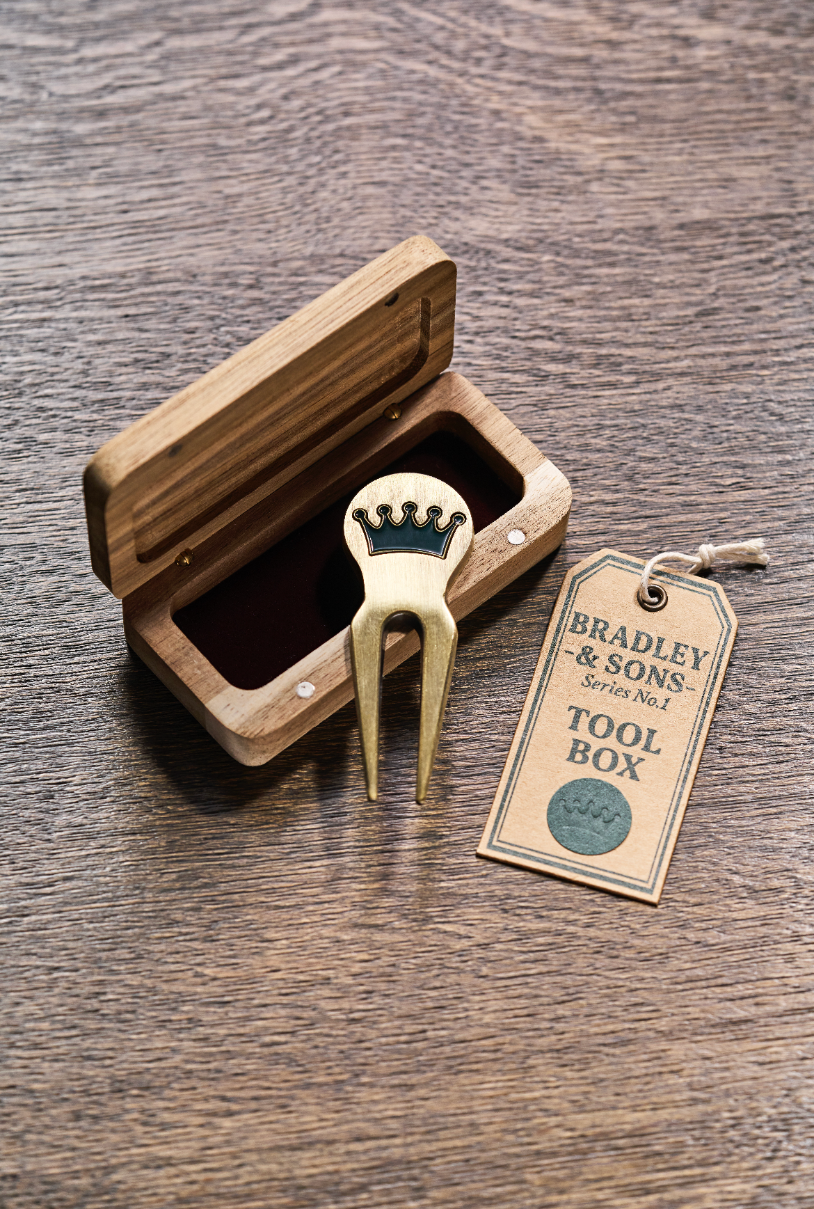 • Brass divot tool presented in a hardwood tool box